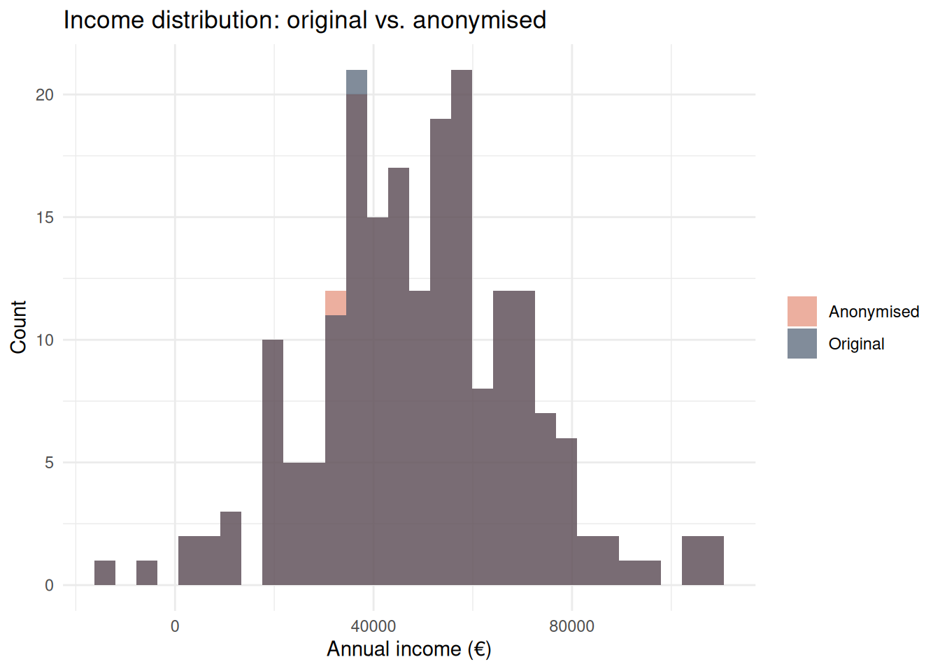 title = "Income distribution: original vs. anonymised",