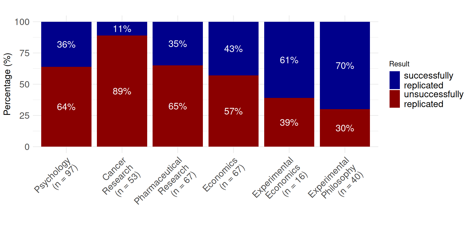 | Chang & Li (2015) – Economics (67 papers, 29 papers replicated) | 43% | 57% |