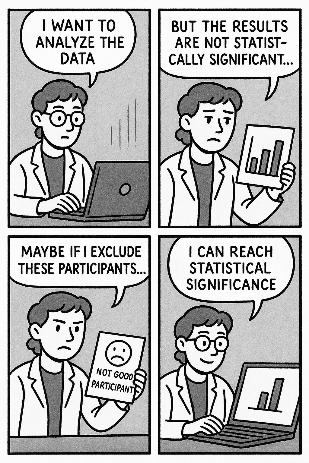 Stefan, A. M., & Schönbrodt, F. D. (2023). Big little lies: A compendium and simulation of p -hacking strategies. Royal Society Open Science, 10(2), 220346. https://doi.org/10.1098/rsos.220346